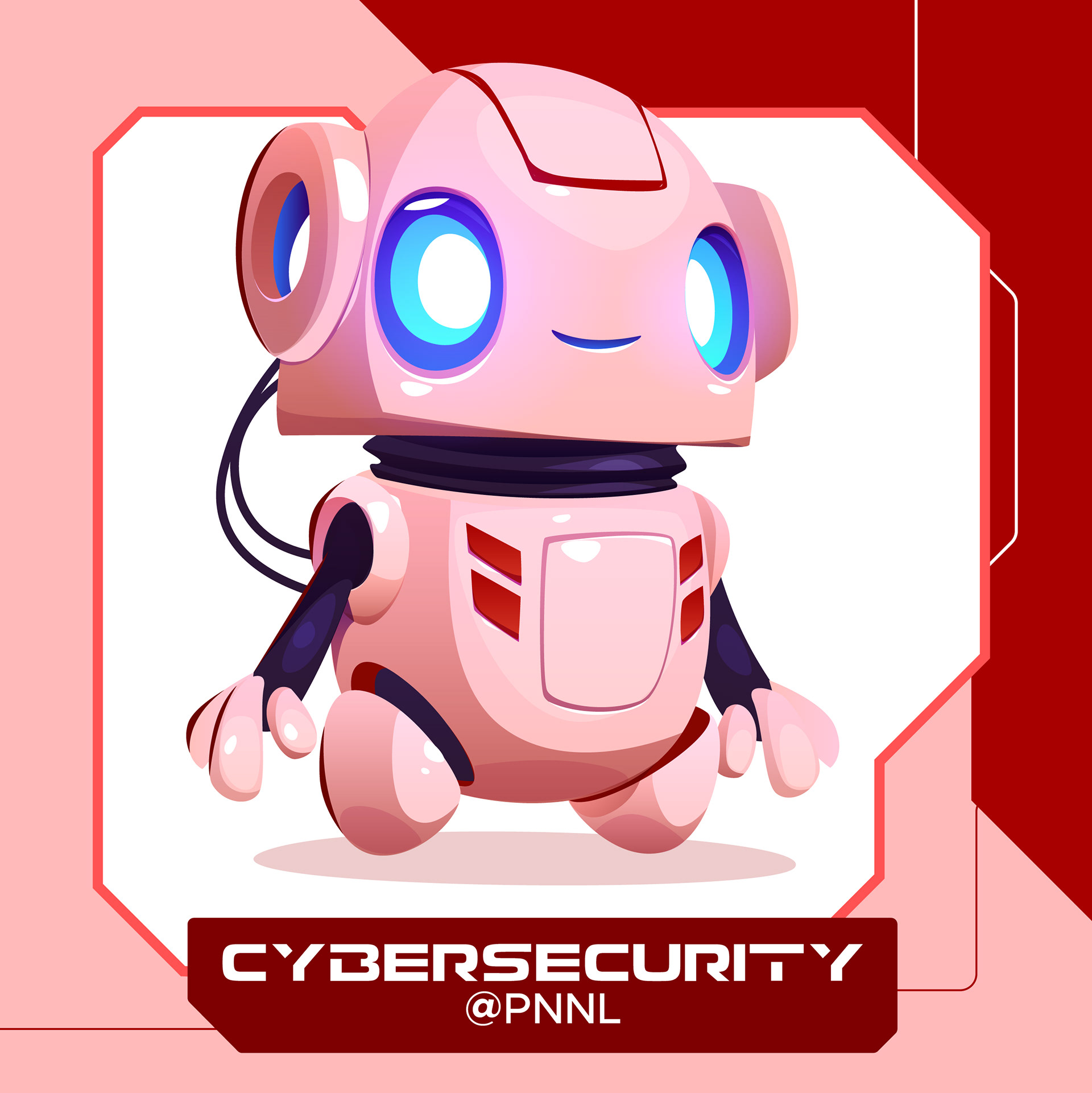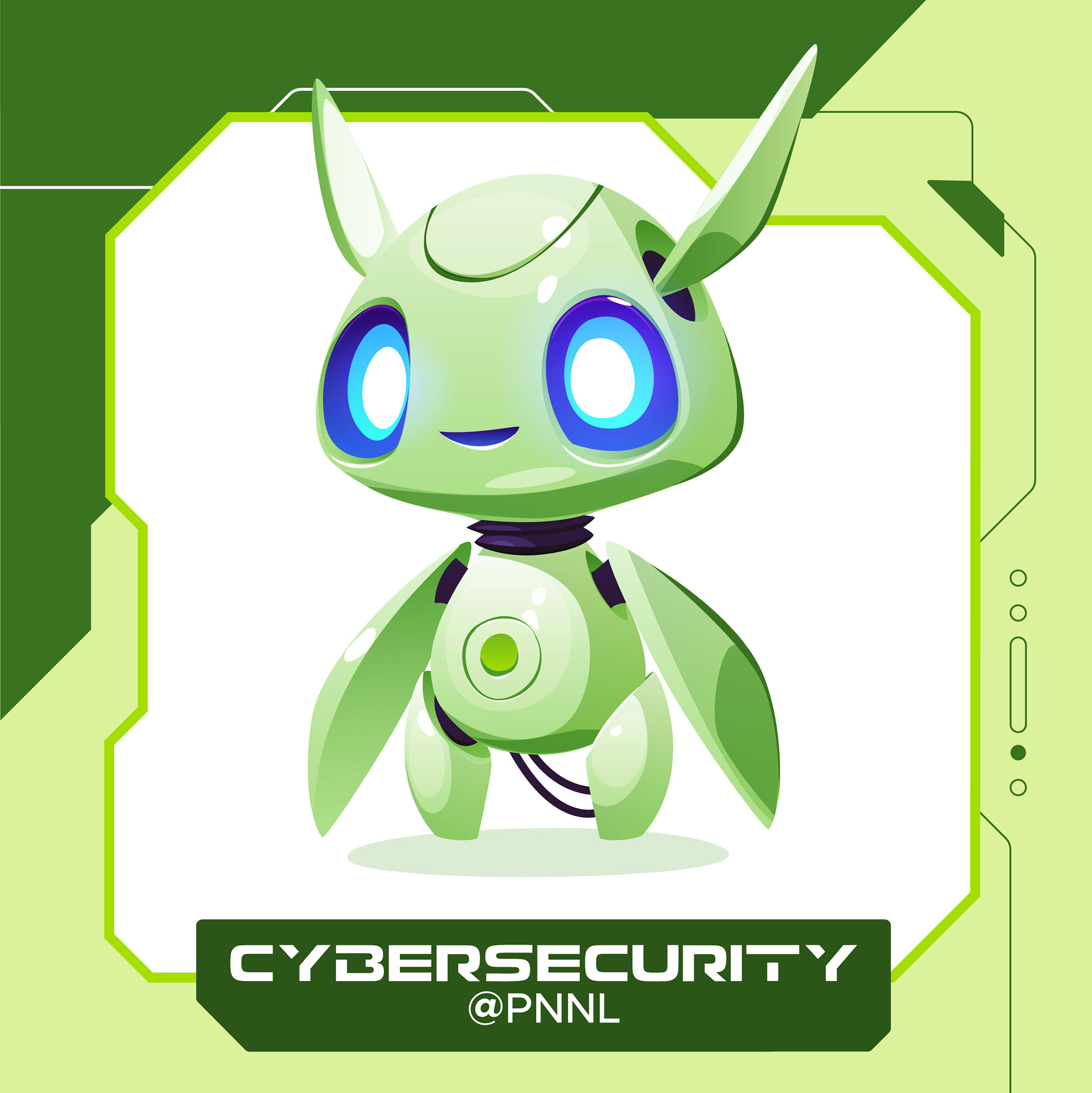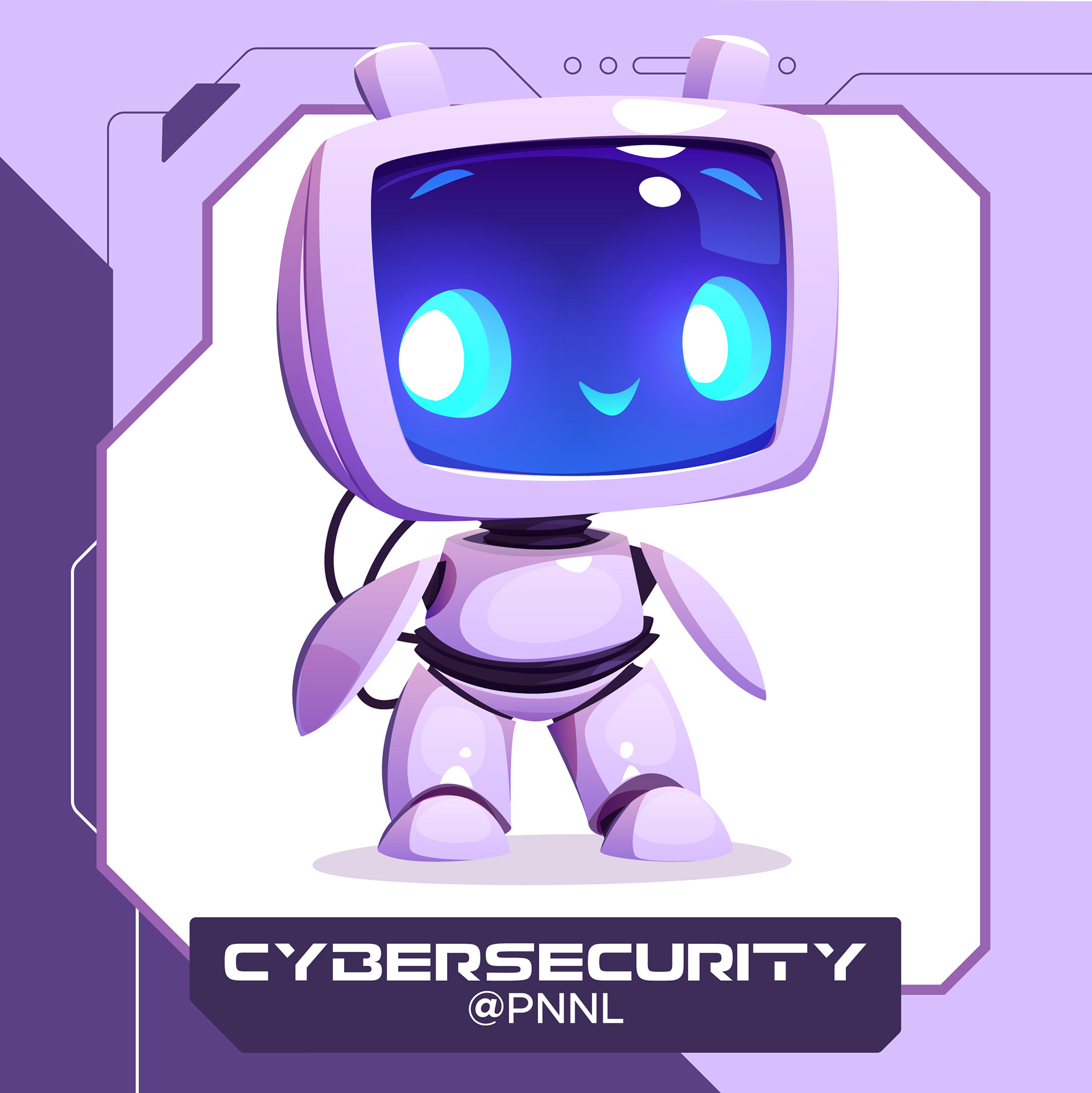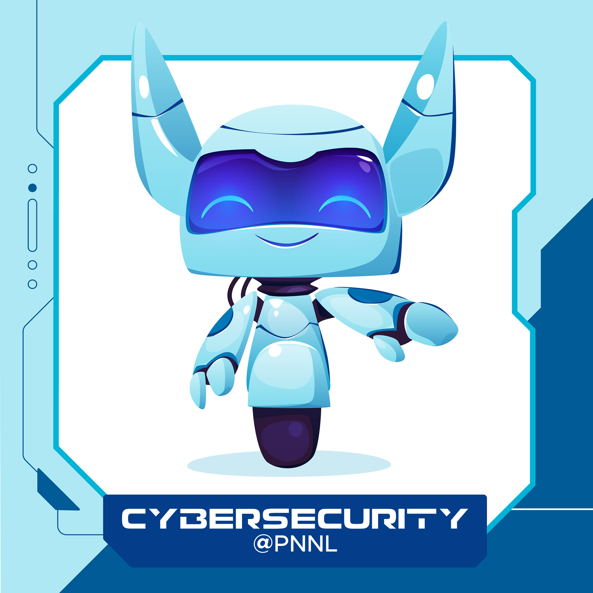 Set of stickers to help promote cybersecurity at PNNL. These stickers will be handed out at events. The client requested a robot theme that is bright and fun.